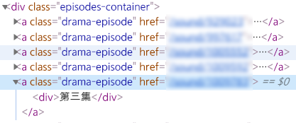 다행히 한 페이지에 시즌당 모든 회차의 정보가 있었다. href와 text 정보만 가져오면 될 것 같았다.