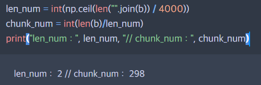 len_num = int(np.ceil(len("".join(b)) / 4000))